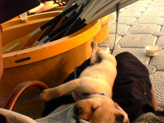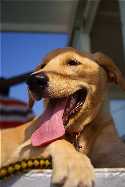 至於為何說他是條硬漢,以前騎車載他,只要有大狗追、吠我,他會不顧行車平安的跳車咬他...真的是很猛....很忠心。