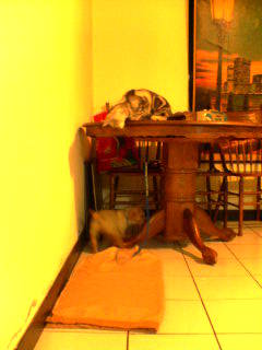 然後咪咪就用貓拳猛攻他頭....太可愛了啦!!!