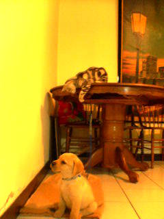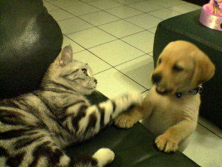 他也是超可愛的啦!特別是他找咪咪玩的時候...